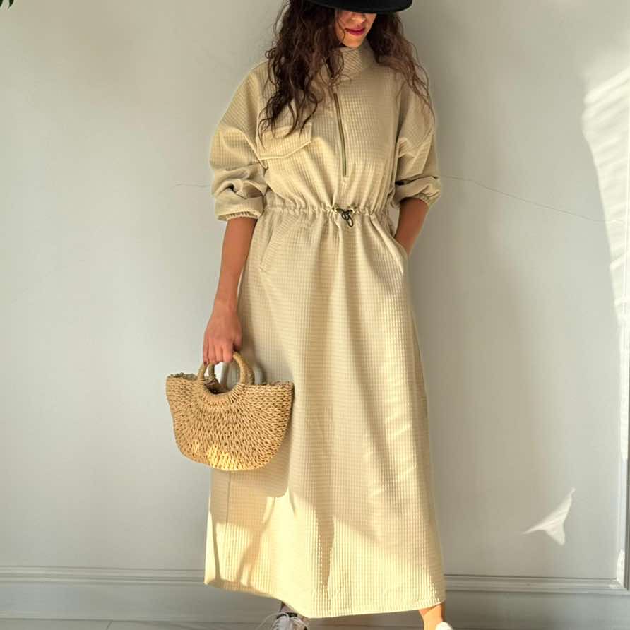 خانه محصولات / Dress پیراهن کاپ بزرگنمایی تصویر پیراهن کاپ 2,900,000 تومان سایز لباس : Free Size 36 - 48 رنگ : مشکی كرم سبز زيتوني نسكافه اي اضافه به سبد خرید دسته : محصولات / Dress اشتراک گذاری Facebook Twitter linkedin Telegram توضیحات : پیراهن کاپ ، ترکیبی از راحتی و طراحی مینیمال پاییزی است. فرمی آزاد و راسته با دوخت فیت در قسمت کمر که به کمک بند قابل تنظیم، اندام را ظریفتر نشان میدهد. یقهی ایستاده، زیپ فلزی و بافت ریز فیتیلهای، ظاهری خاص و کاربردی به آن داده است؛ لباسی که میتواند هم حس آرامش بدهد، هم شیک و استایلدار باشد. 🟢 ویژگیهای برجسته پارچه فیتیلهای پاییزه با بافت نرم و تنفسپذیر طراحی یونیورسال؛ قابل استفاده به عنوان مانتو یا پیراهن بلند زیپ فلزی طلایی یا نقره ای ( بسته به رنگ )با یقه ایستاده و جیب طراحیشده روی سینه بند تنظیم در کمر برای فیت دلخواه دارای دو جیب کاربردی در دو طرف عرضه در چهار رنگ خاص: کرم، نسکافهای، سبز زیتونی، مشکی فریسایز مناسب سایزهای ۳۶ تا ۴۸ 🔵 جزئیات فنی دور سینه: ۱۳۰ سانتیمتر قد لباس: ۱۳۰ سانتیمتر قد آستین: حدود ۶۰ سانتیمتر جنس پارچه: فیتیلهای پاییزه (نرم، گرم و سبک) 🧺 نکات مراقبتی شستشو با آب سرد و مایع مخصوص لباس رنگی اتوکشی ملایم از پشت پارچه از خشککن صنعتی خودداری شود مناسب فصل پاییز و زمستان 💡 پیشنهاد استایل برای استایل شهری مینیمال، پیراهن کاپ را با کتانی سفید و کیف حصیری ست کنید. در روزهای سردتر، روی آن ترنچ یا کت کوتاه چرمی بپوشید و با بوتهای مشکی یا کرم ترکیب کنید. کلاه حصیری یا فدورا و اکسسوری طلایی، تکمیلکنندهی این استایل خاص خواهند بود. نظرات ( 0 ) نقد و بررسیها موضوع : * نام و نام خانوادگی : شماره تماس: موبایل نا معتبر آدرس ایمیل : * ایمیل نامعتبر است متن : مقدار الزامی تصویر امنیتی: