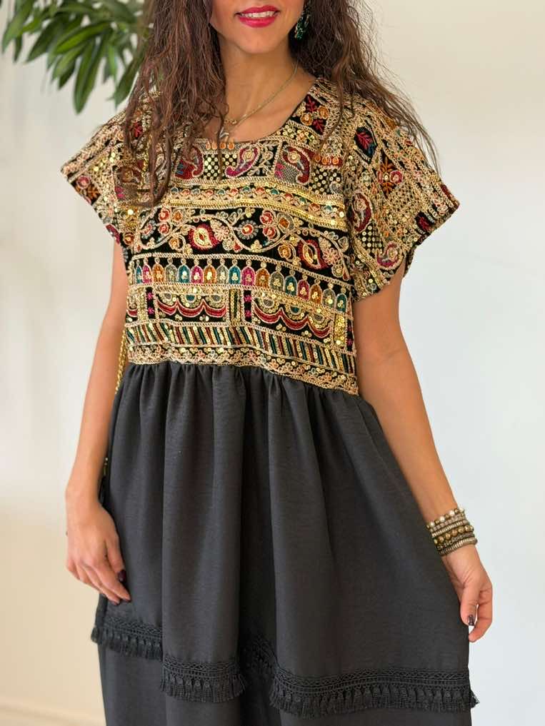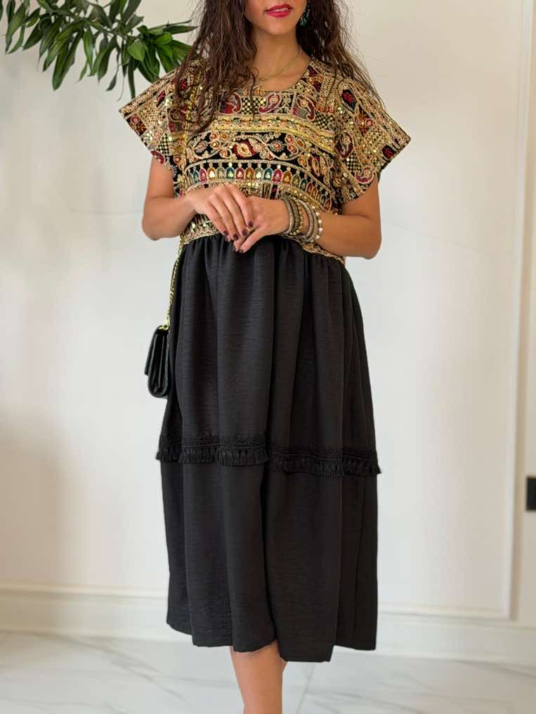 خانه محصولات / Dress پیراهن یلدا بزرگنمایی تصویر پیراهن یلدا 2,980,000 تومان سایز لباس : Free Size 36-46 اضافه به سبد خرید دسته : محصولات / Dress اشتراک گذاری Facebook Twitter linkedin Telegram توضیحات : ✨ پیراهن “یلدا”؛ جشنواره رنگ و طلاپیراهن “یلدا” از مجموعه زادوک، یک شاهکار هنری است که با خرجکار مخمل و پولکدوزی دستی طراحی شده. این پیراهن نه تنها یک لباس است، بلکه یک جشنواره از رنگ، طلا و هنر است که شما را در هر مهمانی، جشن و دورهمی مرکز توجه قرار میدهد. 🎨 خرجکار مخمل و پولک؛ درخشش طلاییبخش بالایی این پیراهن با پارچه مخمل خرجکار شده و پولکدوزی دستی ساخته شده که طرحهای سنتی ایرانی مثل بتهجقه، گل و بوته، طاقهای رنگارنگ و نقشمایههای قاجاری دارد.✨ ویژگیهای خرجکار:🌟 پولکهای طلایی درخشان - در نور میدرخشند🌟 رنگهای زنده - قرمز، آبی، سبز، نارنجی🌟 طرحهای سنتی ایرانی - بتهجقه و گل🌟 دوخت دستی - هر پیراهن منحصر به فرداین خرجکار در نور خورشید یا نور مهمانی، جلوهای خیرهکننده دارد. 🖤 دامن دو طبقه مشکی؛ راحتی و زیباییبخش پایینی پیراهن از پارچه نرم و دو طبقه مشکی ساخته شده که با منگولههای ظریف تزئین شده. این دامن:✅ حرکت راحت - پارچه نرم و سبک✅ دو طبقه شیک - جلوهای لایهای و حجیم✅ منگولههای ظریف - جزئیات زیبا✅ رنگ مشکی همهکاره - با همه ست میشودترکیب خرجکار طلایی + دامن مشکی یک کنتراست بینظیر است که شما را شیک و متفاوت نشان میدهد. 👗 چگونه پیراهن “یلدا” را استایل کنیم؟💡 مهمانی شیک: پیراهن + کفش پاشنه طلایی + کیف مشکی + جواهرات طلایی💡 جشن یلدا/عید: پیراهن + کفش راحت + شال مشکی یا کرم💡 دورهمی خانوادگی: پیراهن + صندل تخت + اکسسوری ساده💡 استایل بوهو: پیراهن + بوت بلند + کلاه + کیف چرمی 🌟 چرا پیراهن “یلدا” خاص است؟✅ خرجکار مخمل و پولک دستی - اثر هنری منحصر✅ طرحهای سنتی ایرانی - بتهجقه و گل✅ دامن دو طبقه راحت - حرکت آزاد✅ منگولههای ظریف - جزئیات زیبا✅ قد ۱۱۵ - طول ایدهآل✅ مناسب جشنها - یلدا، عید، مهمانی✅ کیفیت پریمیوم - دوام بالا 💚 برای چه مناسبتی؟این پیراهن برای:💚 جشن یلدا - رنگهای گرم و شاد💚 مهمانیهای شیک - جلوهای لوکس💚 عید و جشنهای خانوادگی - راحت و زیبا💚 دورهمیهای دوستانه - متفاوت و جذاب💚 عکاسی و فتوشوت - خیرهکننده نظرات ( 0 ) نقد و بررسیها موضوع : * نام و نام خانوادگی : شماره تماس: موبایل نا معتبر آدرس ایمیل : * ایمیل نامعتبر است متن : مقدار الزامی تصویر امنیتی: